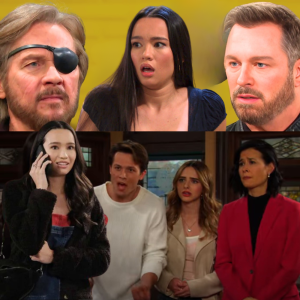 Outside, Brady finds tire tracks, but they’re mostly erased by mud. He picks up a torn piece of cloth embroidered with the DiMera logo. Steve looks over, his eyes gleaming with suspicion: “EJ.”